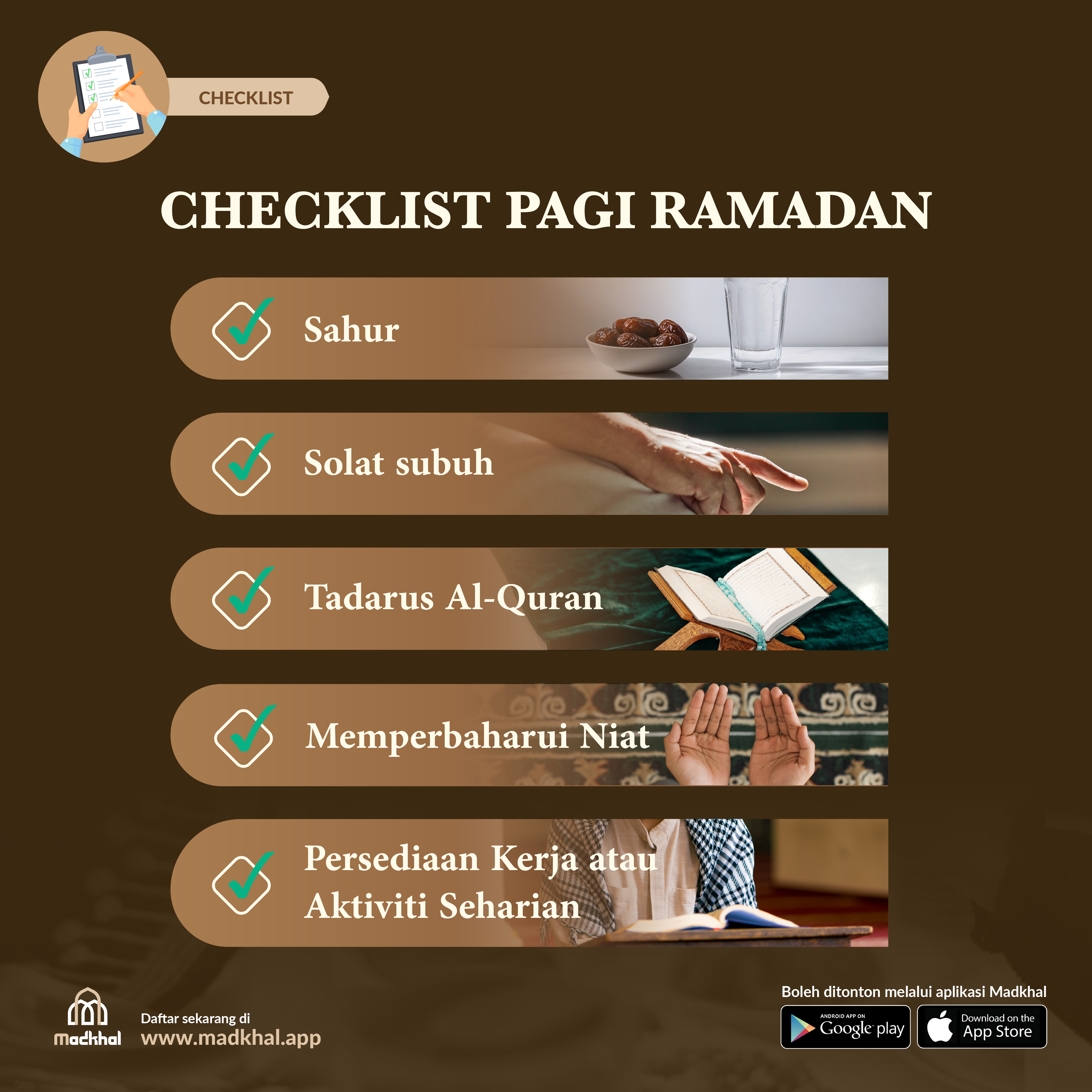 Jom langgani aplikasi Madkhal dan nantikan perkongsian kisah ini bersama Dr. Fatimah Syarha Mohd Noordin dalam aplikasi Madkhal sempena bulan Ramadan ini.